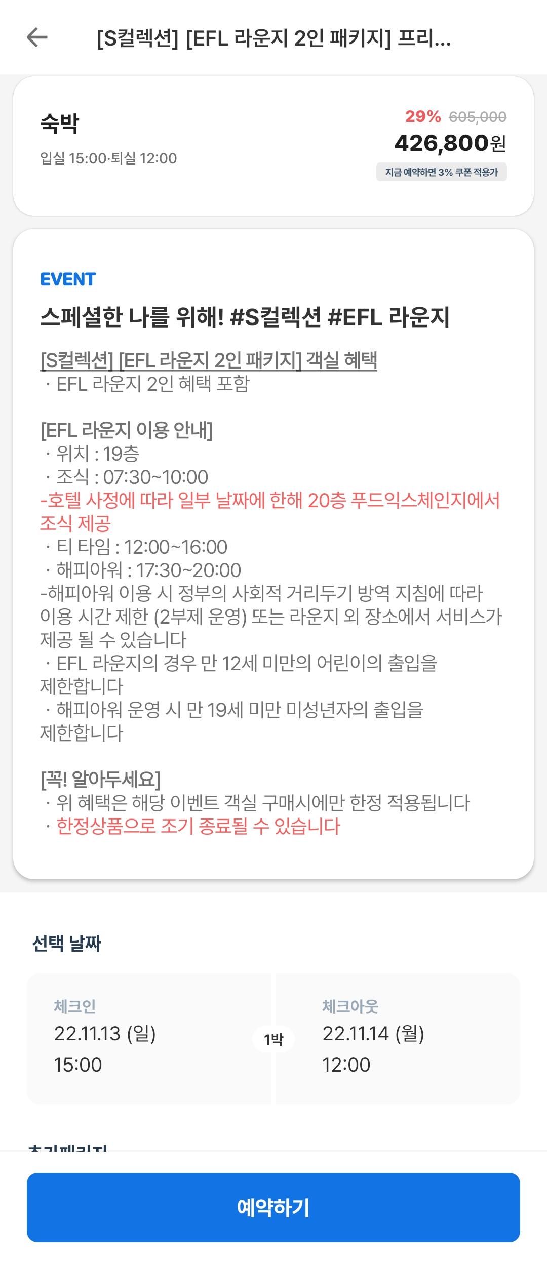 숙박 어플에서 할인을 하고있었고 숙소에 해피아워 조식까지 즐길수있는 패키지라서 당장 예약했다.