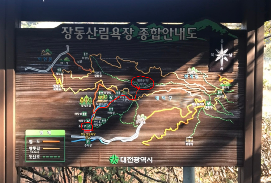 장동산림욕장-황토길-숲속공연장-계족산성-돌아서 내려오기