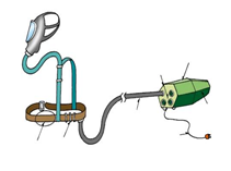 전동 송풍기식에 비하여 상당히 먼 곳까지 송기 할 수 있으며 송기 호스가 가늘고 활동하기도 용이하므로 유해가스가 발생하는 장소에서 주로 사용한다.