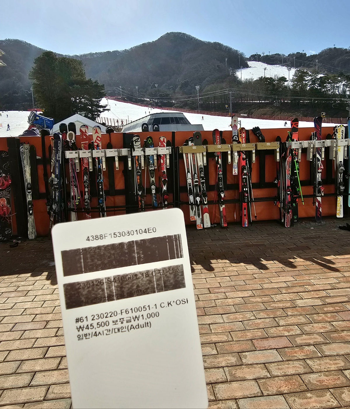 스키장 근처에있는 렌탈샵에서 리프트+장비+옷+ 헬멧을 대여했습니다