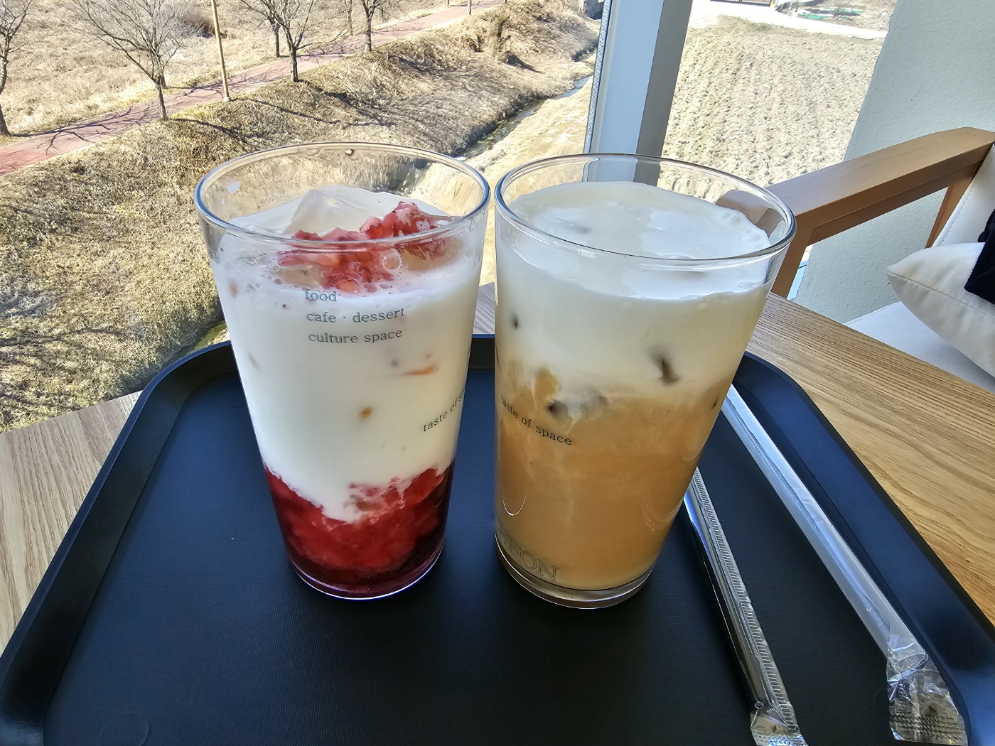 엄마는 솔트라떼를 시켰고 저는 딸기라떼를 시켰는데 둘다 성공적입니다!!