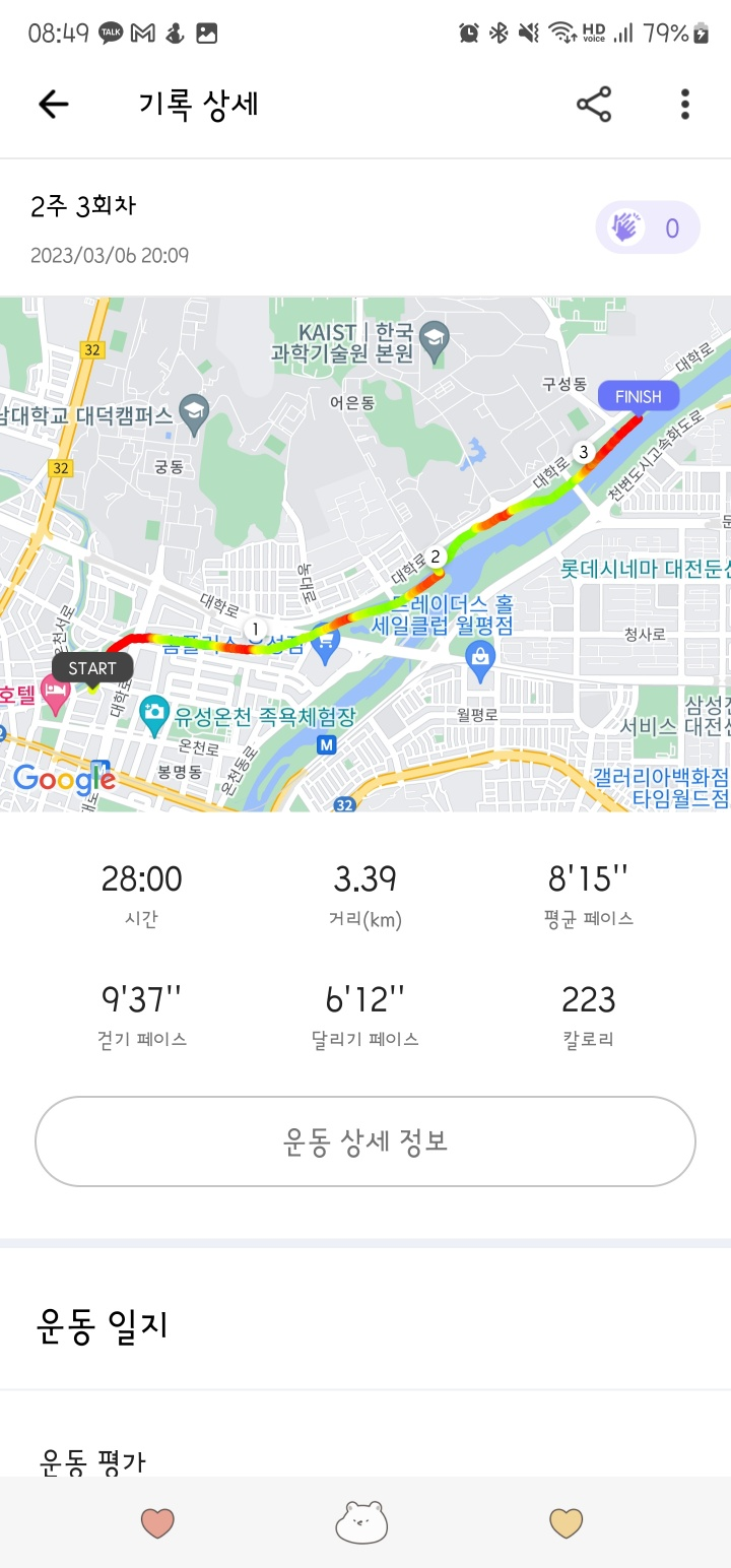 런데이 어플 쓰면서 삼성헬스도 같이 켜서 달리니까 전체 운동도 같이 볼수있어서 좋았습니다.