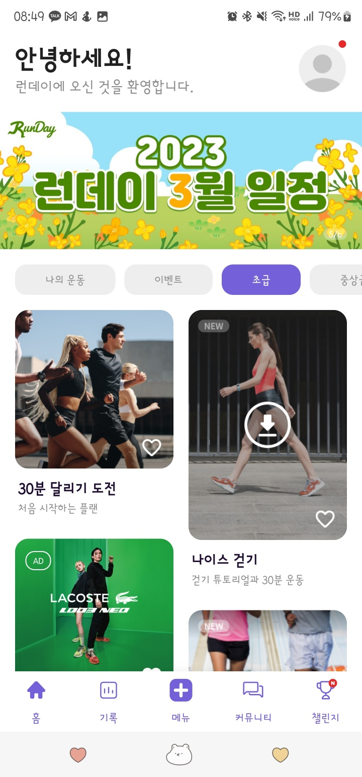 요즘 달리기 어플이 잘 되있다고해서 런데이 어플을 다운받았습니다.