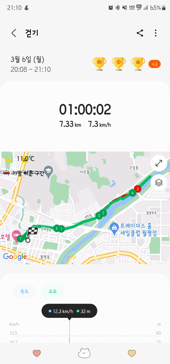 1일차에 갑천을 달렸고, 2일차에는 한밭수목원을 산책했다가 저녁으로 술을 먹었다지요..