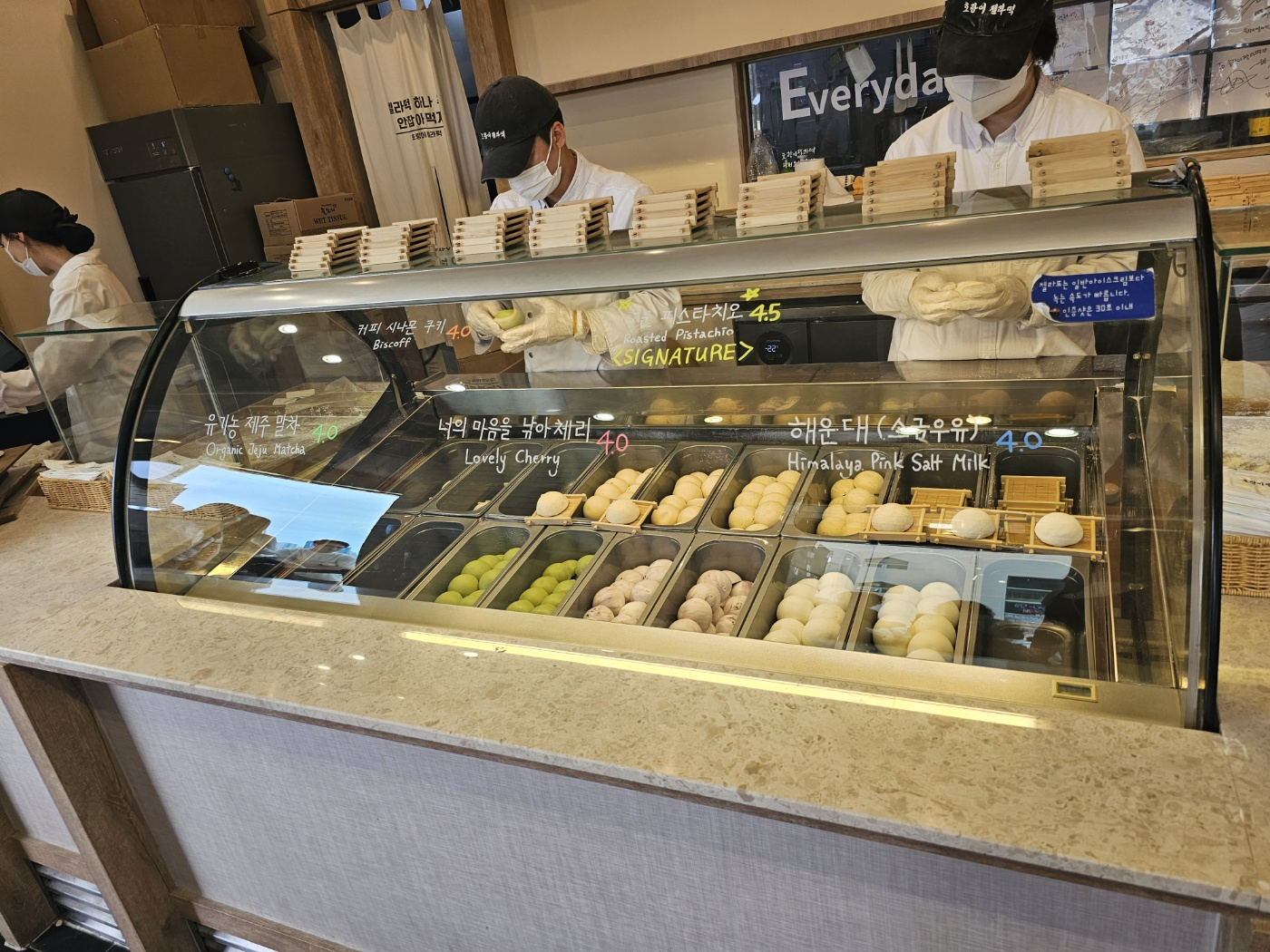 너의마음을 낚아체리, 구운 피스타치오, 유기농 제주말차 3가지 맛입니다.