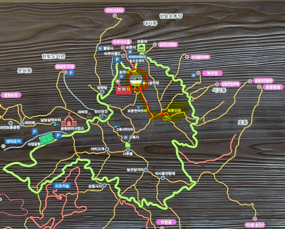 거기서 왼쪽으로가셔야 야경을 볼수있는 보문산성이 나옵니다.