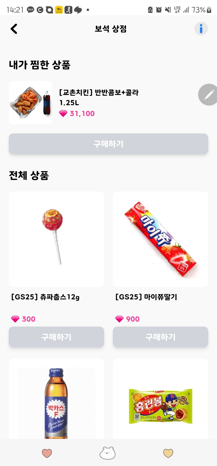처음에 사고싶은 기프티콘을 찜할수있는데 저는 교촌치킨을 찜했어요.