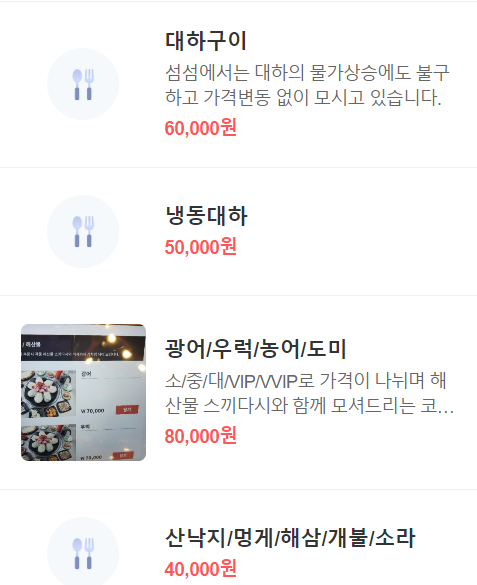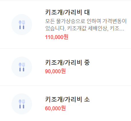 저희는 6명에서가서 키조개, 가리비 대를 주문했습니다.