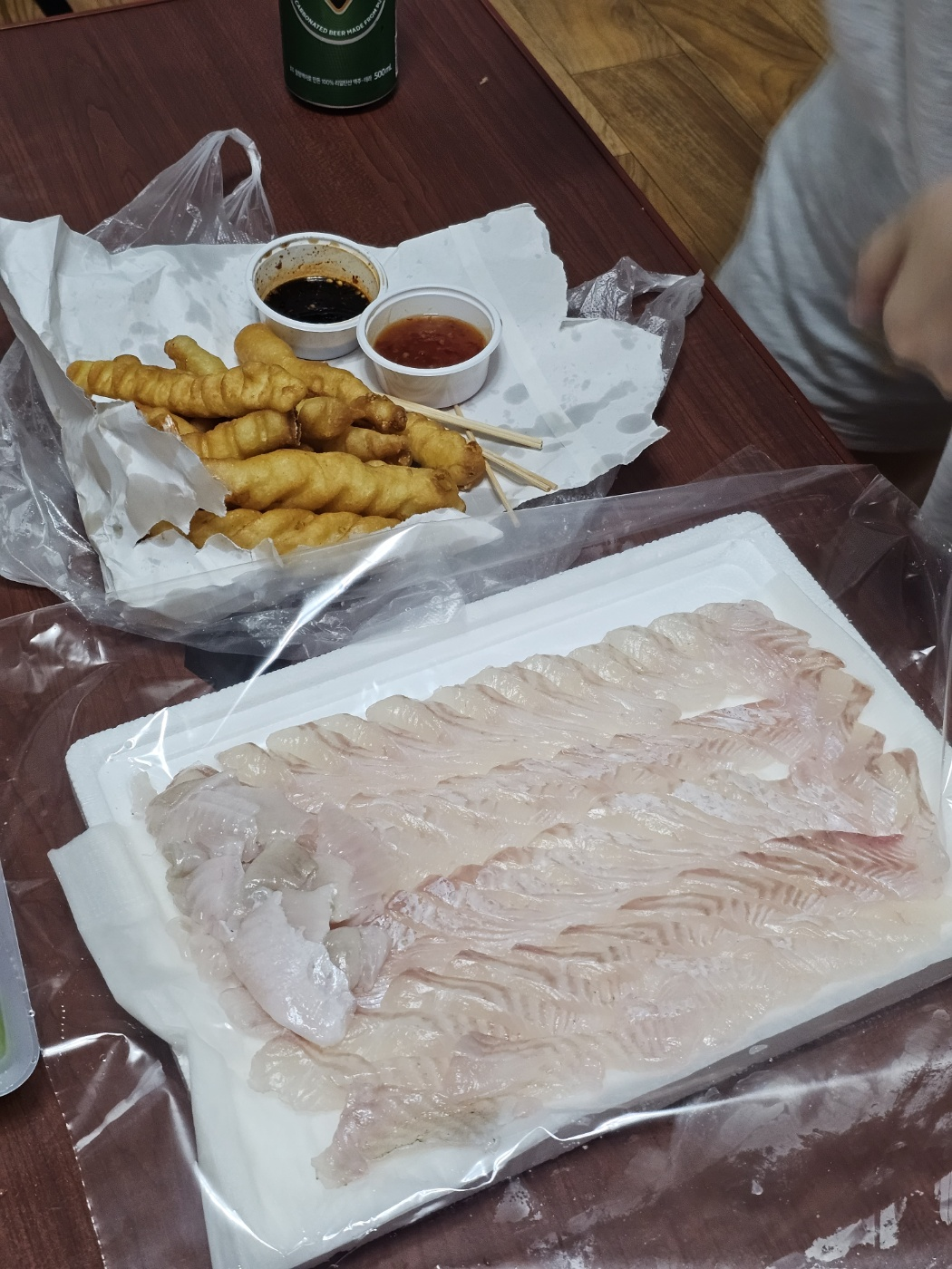 주차장입구쪽에 튀김을 파는집이있었는데 거기서 오징어튀김과 새우튀김도 사서 함께먹었습니다