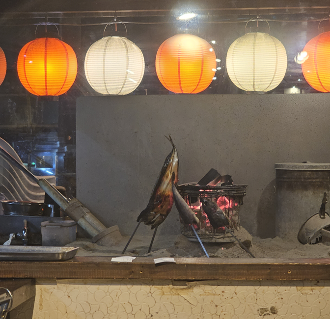 고등어 등심을 주문하면 이렇게 꼬챙이에 세워서 불옆에서 구워줍니다.