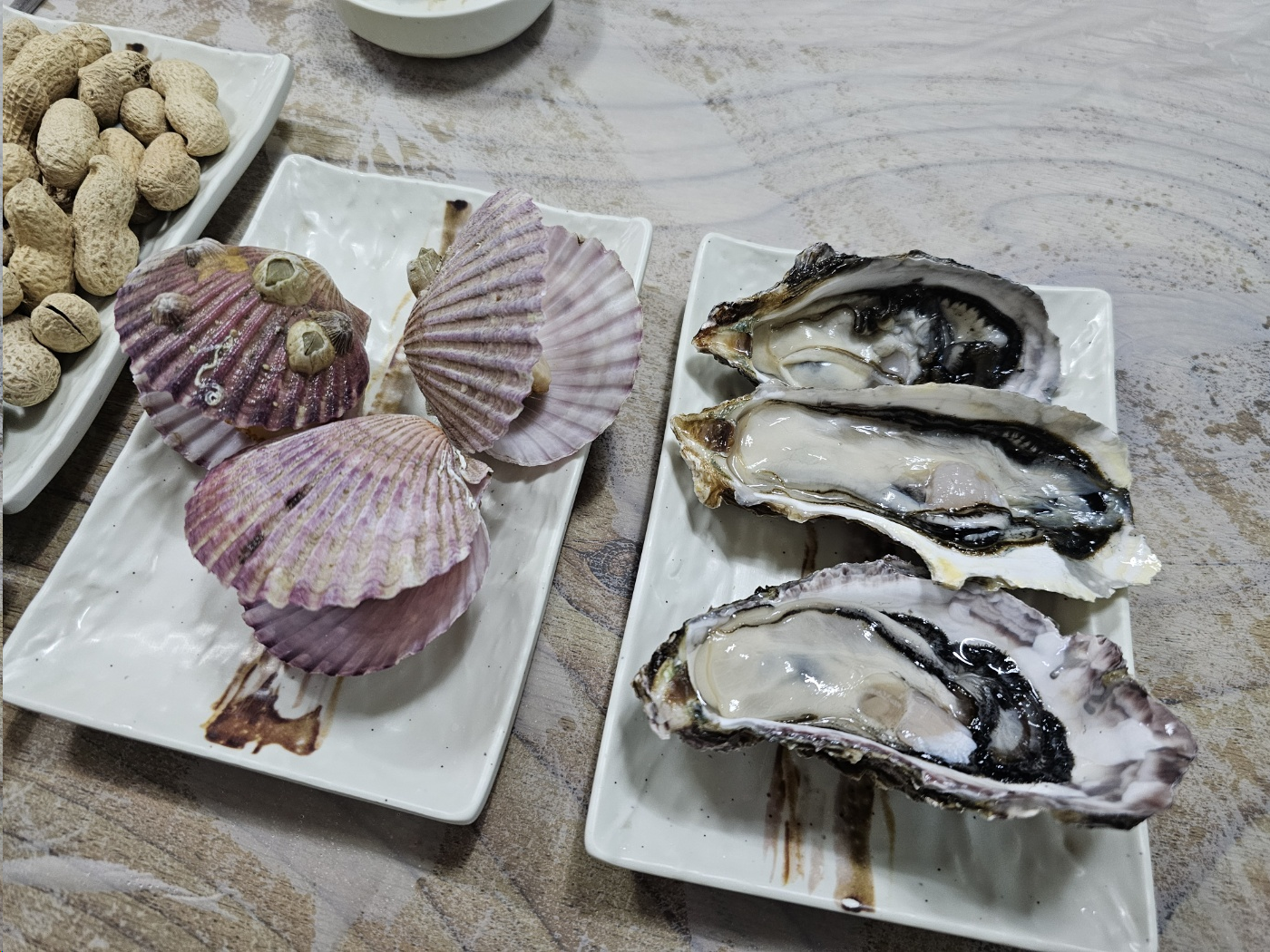 기본세팅에는 전과 가리비 생굴이나와요.