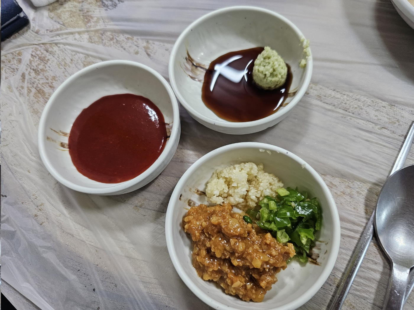 양념은 초장과 간장와사비 쌈장이 나옵니다.