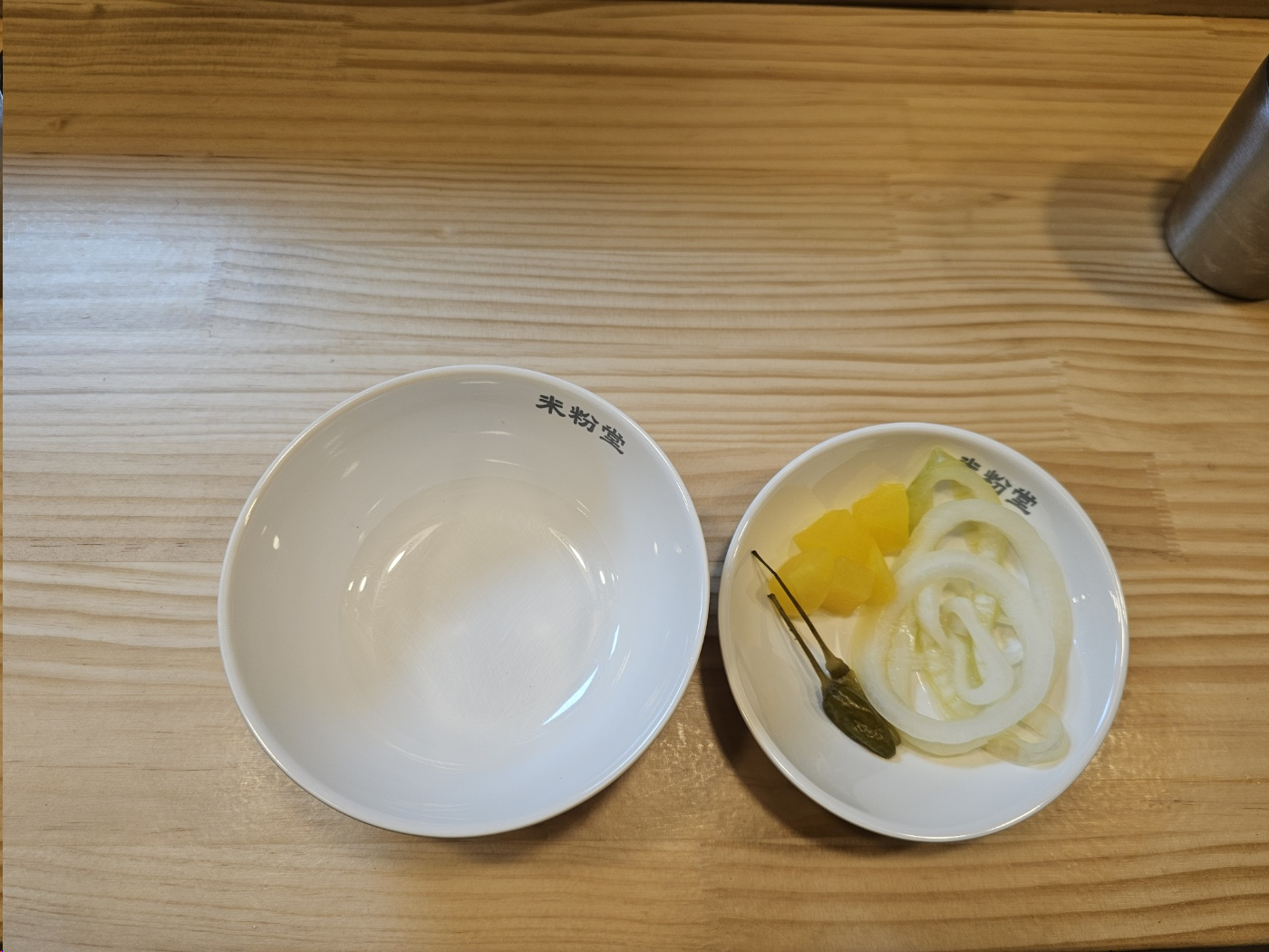 우선 기본세팅으로 양파와 단무지, 그릇하나, 물한컵이나와요