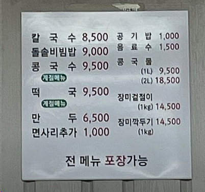 양이 아주많아서 칼국수 2개와 만두를 시켜서 나눠먹는걸 추천드립니다