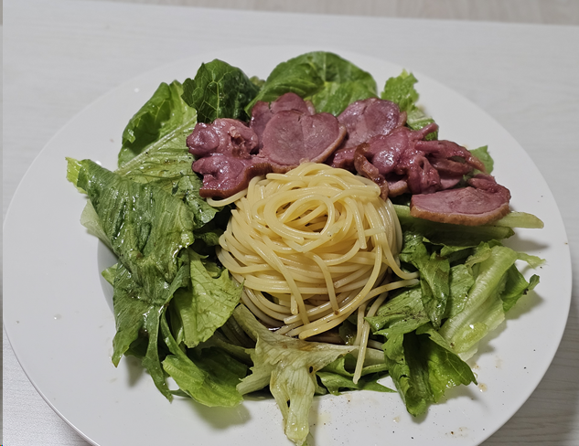 파스타면 완전 푹 삶아서 차게 헹구고, 샐러드 사다가 오리엔탈 드레싱 뿌려먹으면 끝!