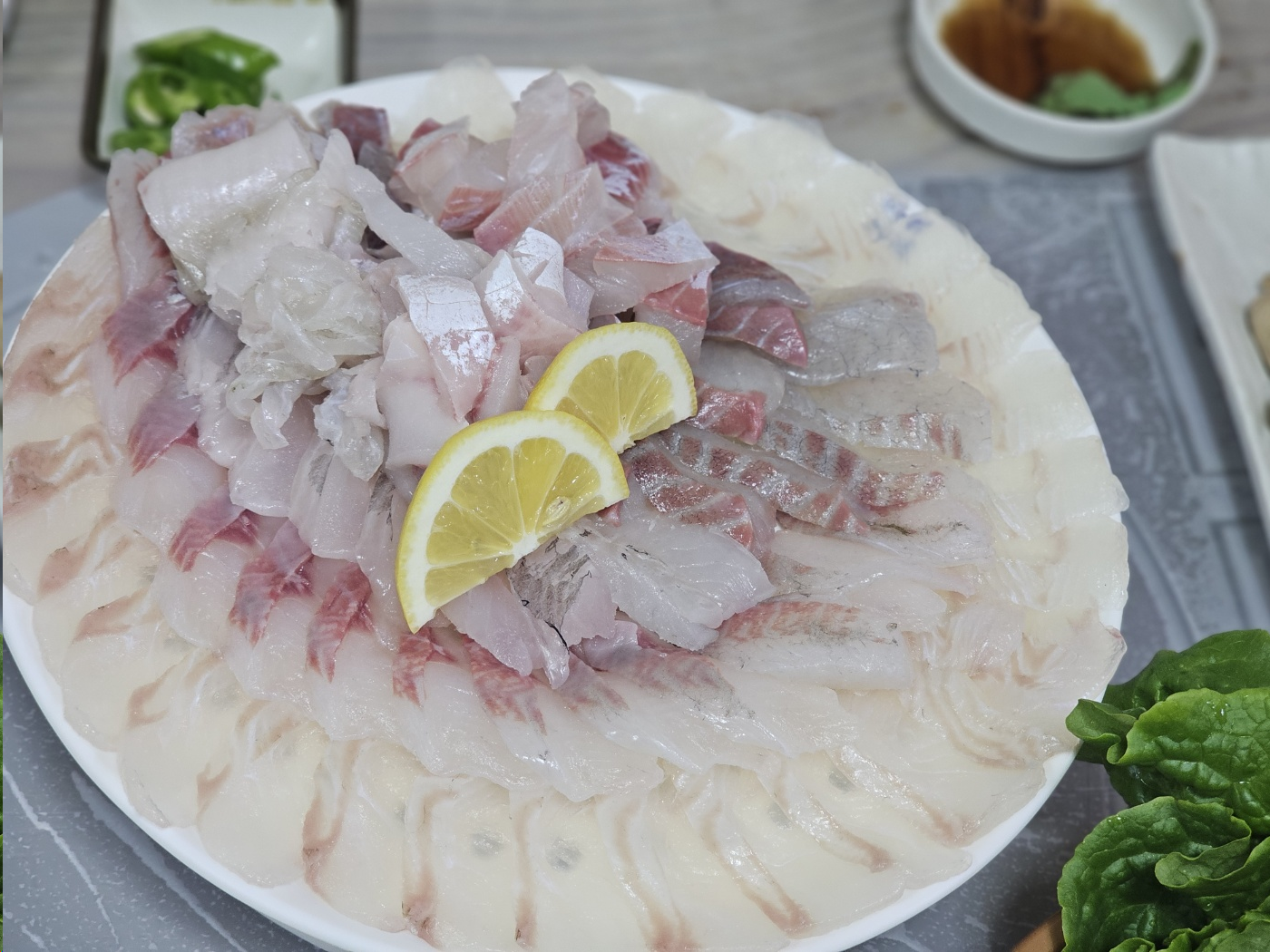 저번에는 고급 모듬회를 시켜먹었는데 이번에는 모듬회로 시켰어요!
