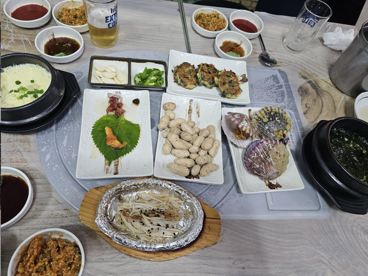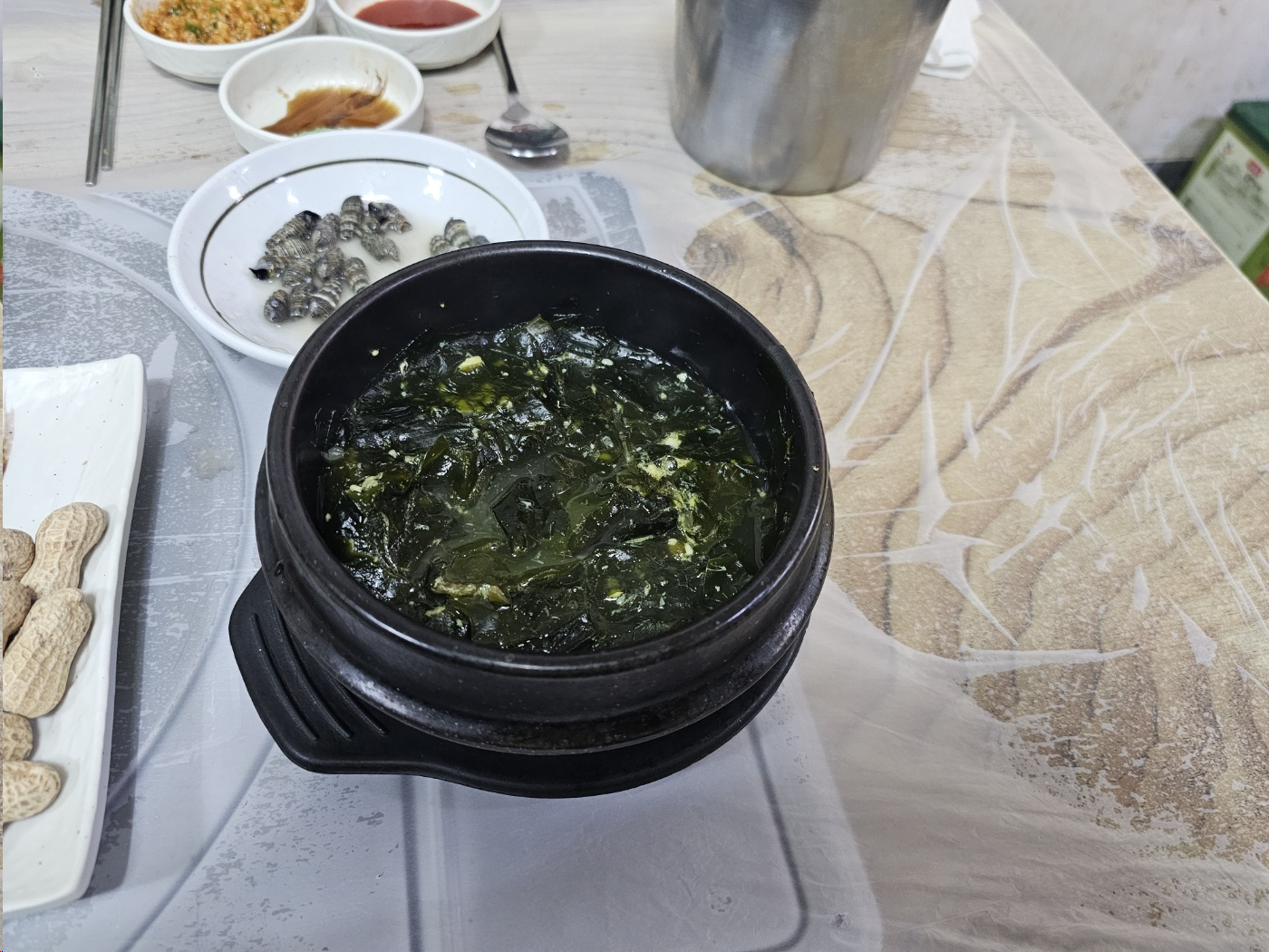 기본 반찬으로는 해삼 멍개 고동 미역국 계란찜 가리비 초밥 생선구이가 나와요