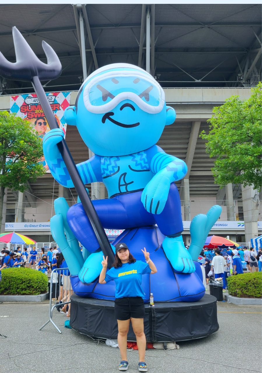 주차장에 내려서 지도켤필요없이 파랑이들을 따라가면 월드컵경기장이나온다.